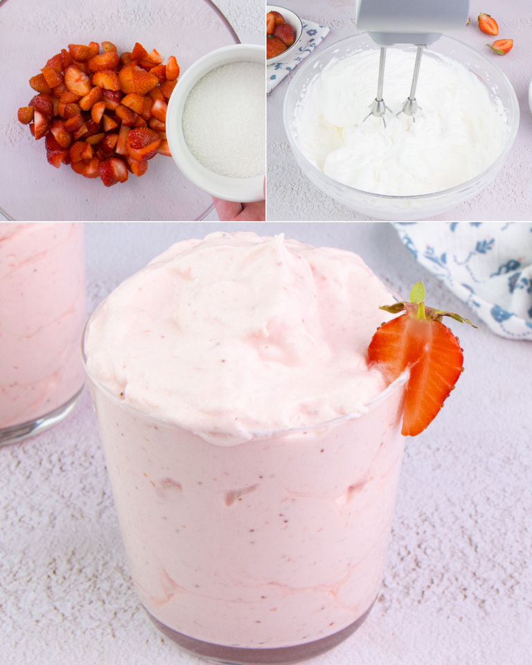 Mousse aux fraises : 3 ingrédients pour un dessert frais et crémeux ! INGREDIENTS 250 g de fraises 70g (3/4 tasse) de sucre 250 g (1 tasse) de crème fouettée …