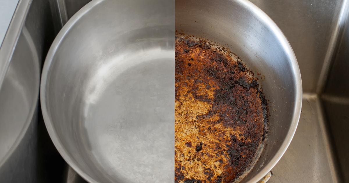 - Après le temps de cuisson, retirez la casserole ou la poêle de l’eau chaude. Utilisez une brosse ou un grattoir pour enlever les résidus de saleté et de graisse.